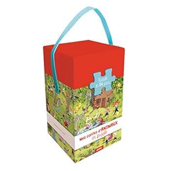 Des boîtes de puzzles au format simple et pratique, à transporter partout grâce à leur anse. Chaque boîte contient un puzzle de 54 pièces, magnifiquement illustré, qui mélange ici de nombreux contes mettant en scène des animaux. Dans ce cherche et trouve, retrouvez le chat botté, le vilain petit canard, le loup et les sept chevreaux, la petite poule rousse, les trois petits cochons... et bien dautres encore. À faire et à refaire.