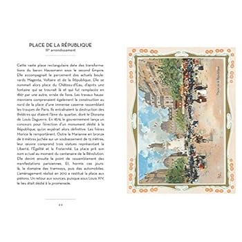 Pourquoi la place de la Nation s’appelait-elle auparavant la place du Trône ? Le Panthéon a-t-il toujours été le sanctuaire des grands hommes de la République ? Molière est-il réellement le fondateur de la Comédie française ? Pourquoi surnomme-t-on l’Assemblée nationale le Palais Bourbon ? Ce petit livre doré sur tranche raconte l’histoire des vingt arrondissements de Paris à travers leurs principaux monuments. Les arrondissements sont illustrés par d’ancien plan et chaque monument est mis en couleur par une jolie chromo du XIXe siècle.